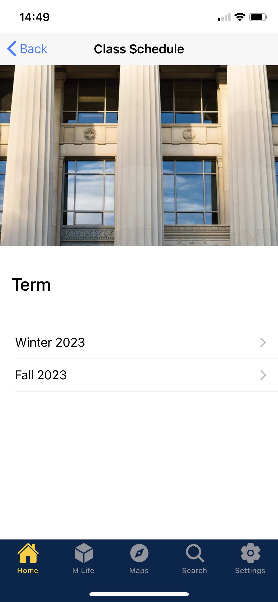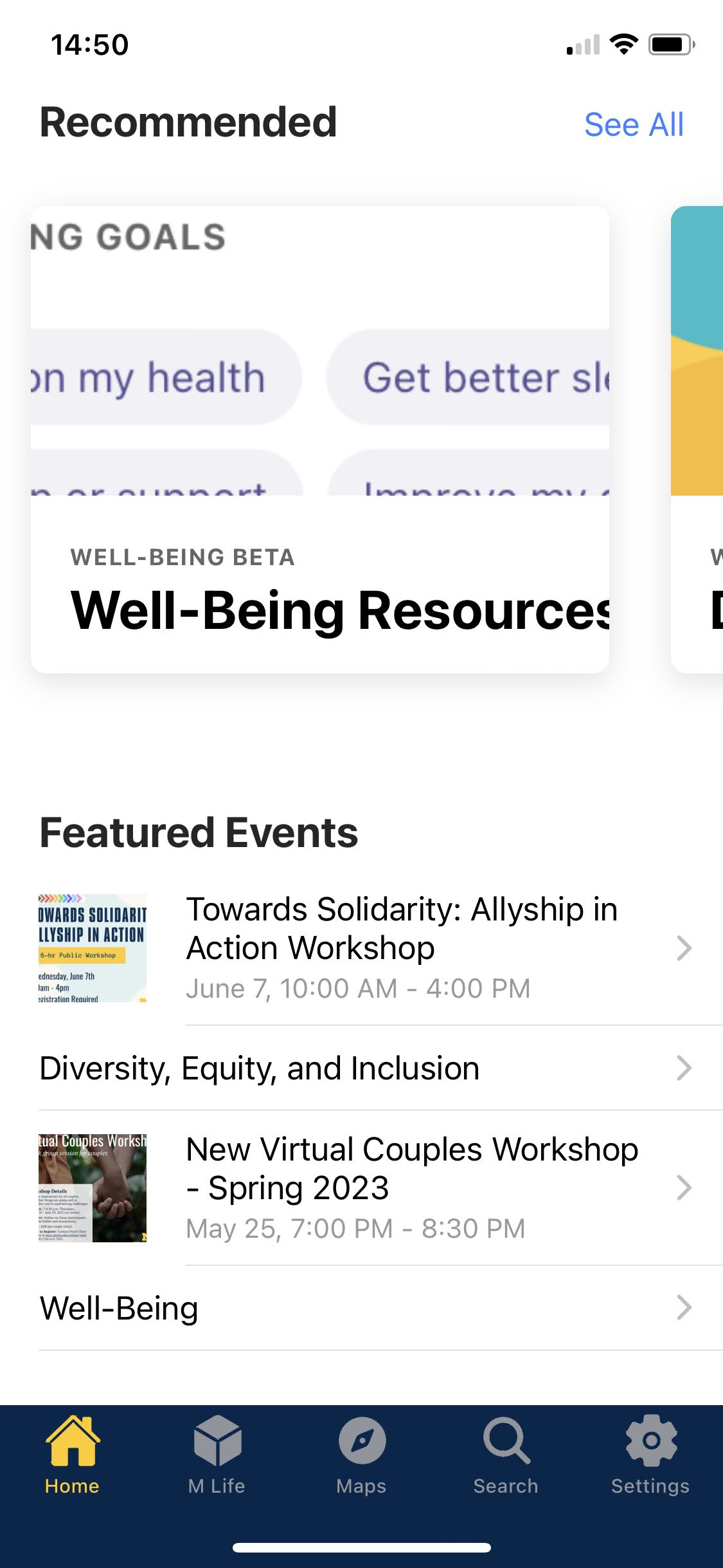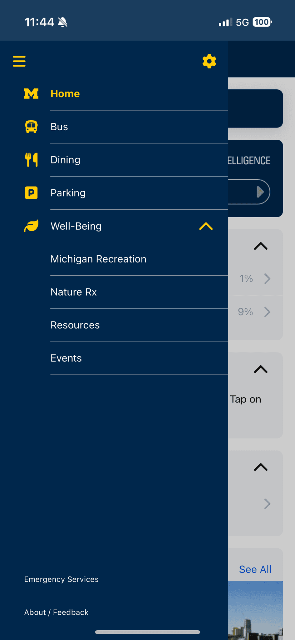 Previous campus resources pages of the Michigan App