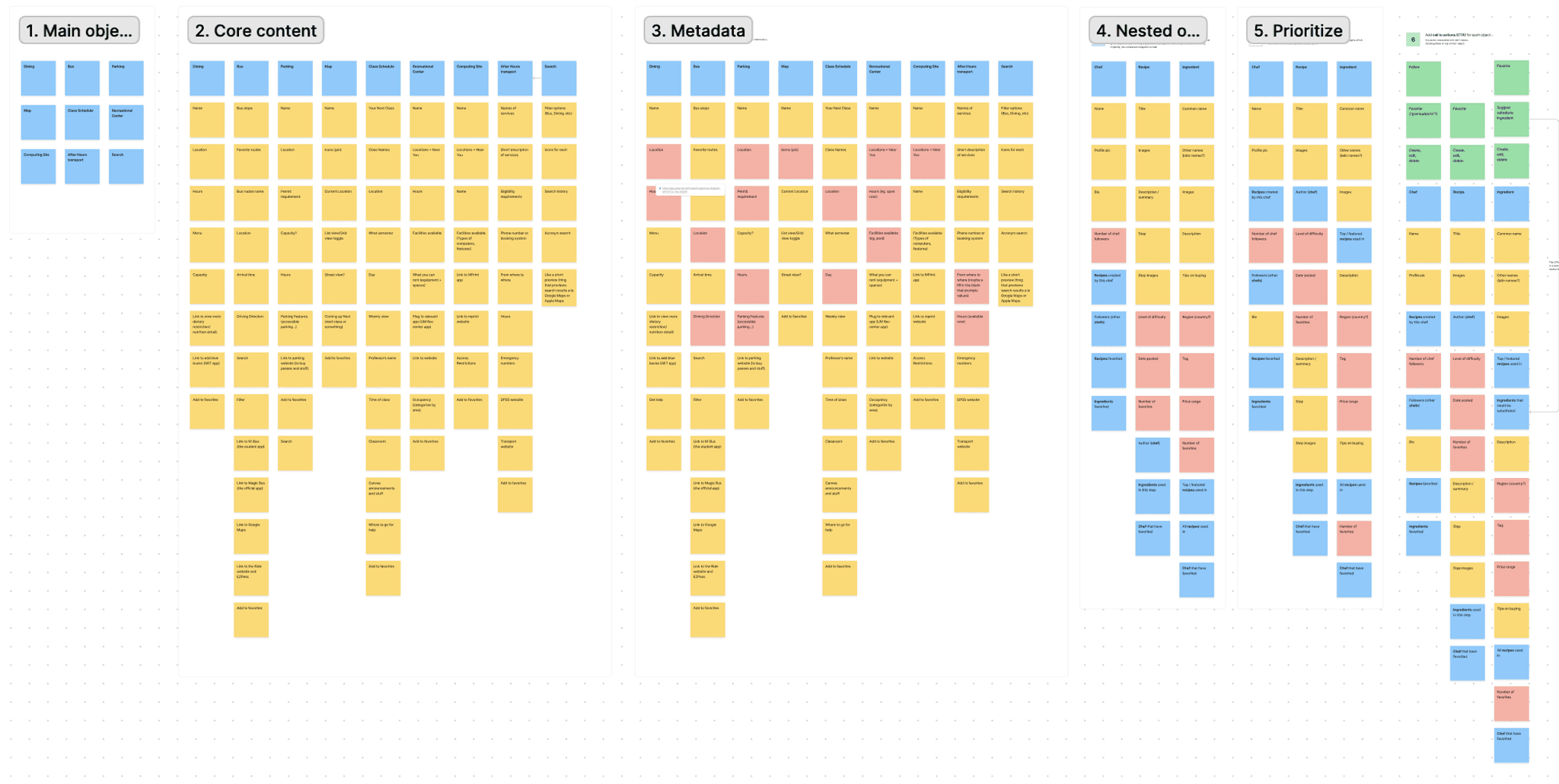 To create a more structured and scalable experience, we applied Object-Oriented UX to identify key objects within the app, such as classes, buses, dining halls, and events. By mapping out these objects, their attributes, and relationships, we clarified what content users need and how it should be organized.