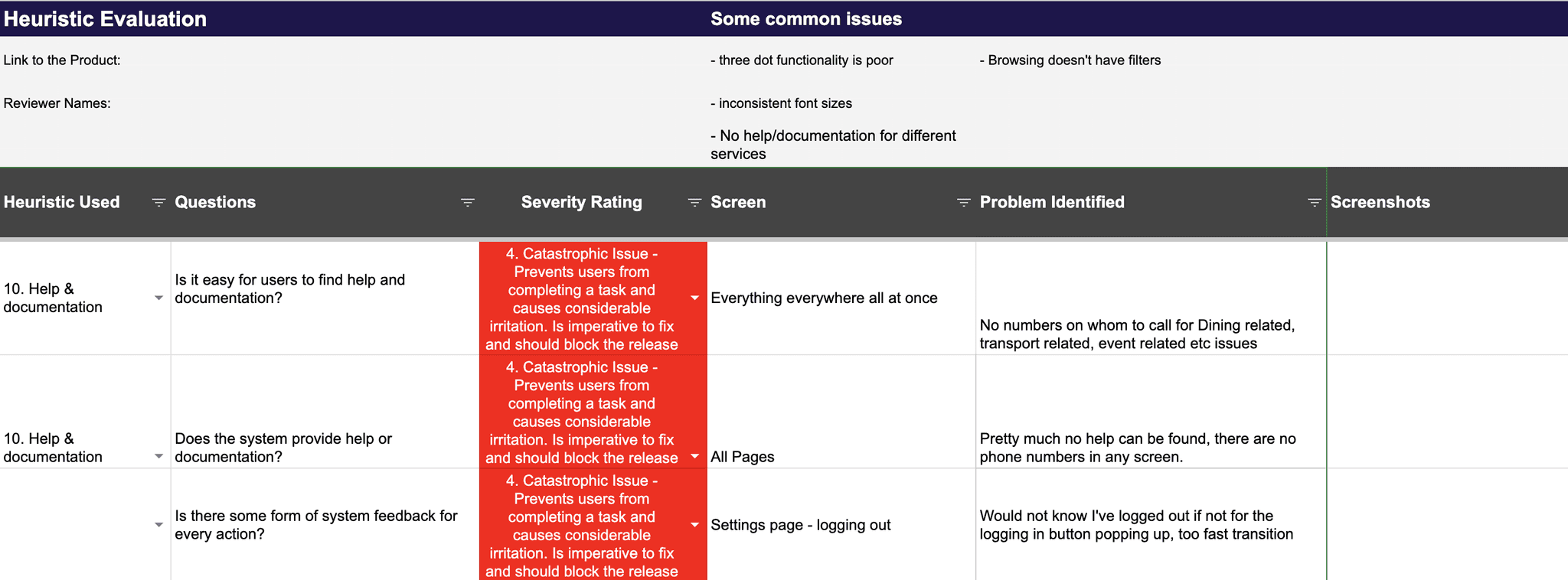 We started by mapping out the app’s information architecture to get a clear picture of how users move through the app and what features it includes. Then, we did a heuristic evaluation to review each feature and function. This helped us find the areas that needed the most improvement, based on how severe the usability issues were.